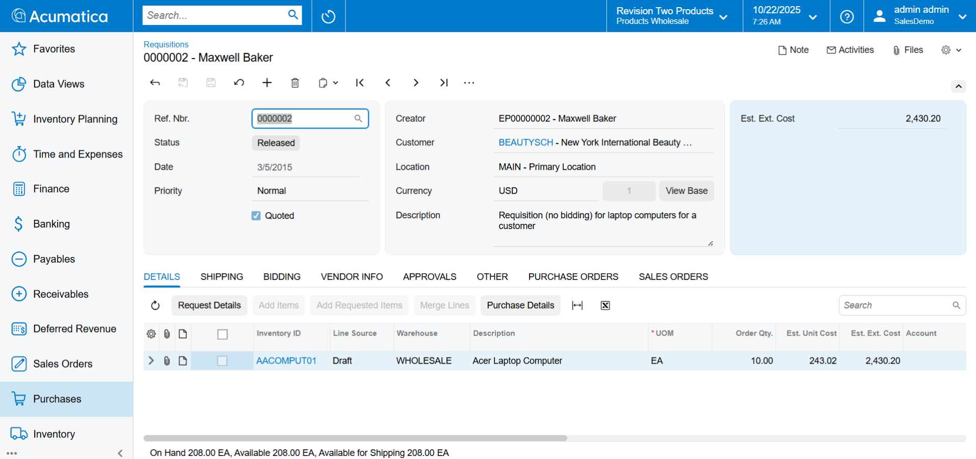 WITH ACUMATICA REQUISITION MANAGEMENT, YOU CAN