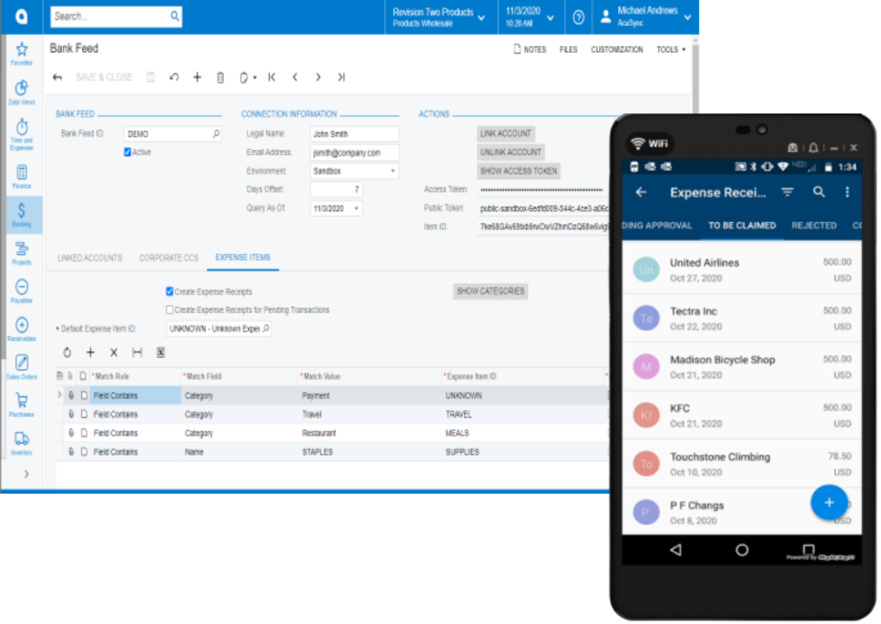 Configure connections to more than 14,000 financial institutions to synchronise credit card transactions with Acumatica. Connections take minutes to configure with flexible schedules and multiple levels of security, including Multi-Factor Authentication (MFA), Advanced Encryption Standard (AES 256), and Transport Layer Security (TLS).